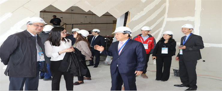 主体结构竣工仪式结束后,来宾还一起参观了中国馆建设情况,就下一步施工做了技术交流,并现场商讨展项运输等急需解决的工作方案。